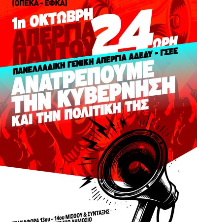 24ωρη ΠΑΝΕΛΛΑΔΙΚΗ ΓΕΝΙΚΗ ΑΠΕΡΓΙΑ ΑΔΕΔΥ – ΓΣΕΕ / ΠΣΕ ΟΓΑ (ΟΠΕΚΑ – ΕΦΚΑ): Ανατρέπουμε την κυβέρνηση και την πολιτική της