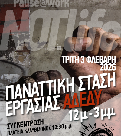 ΠΑΝΑΤΤΙΚΗ ΣΤΑΣΗ ΕΡΓΑΣΙΑΣ ΑΔΕΔΥ ΤΡΙΤΗ 3 ΦΛΕΒΑΡΗ 2026