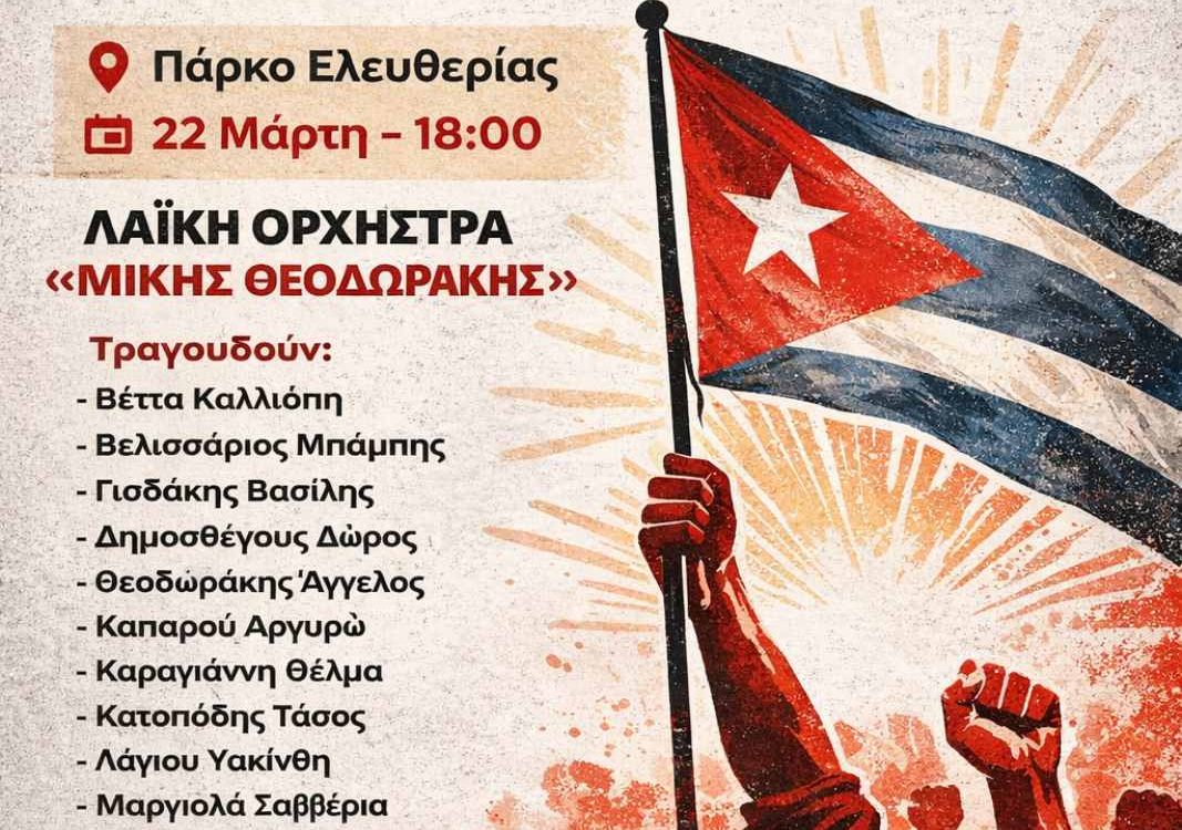 Συναυλία αλληλεγγύης στον Κουβανικό λαό: Κυριακή 22 Μάρτη, 6 μ.μ., Πάρκο Ελευθερίας