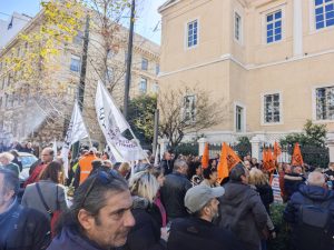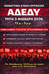 Συγκέντρωση της ΑΔΕΔΥ έξω από το Συμβούλιο της Επικρατείας με βασικό αίτημα να εκδοθεί άμεσα και χωρίς καμία περαιτέρω καθυστέρηση απόφαση για την επαναχορήγηση του 13ου και 14ου μισθού, Τρίτη 3 Φεβρουαρίου 2026. Ακολούθησε πορεία προς το Υπουργείο Οικονομικών. Όπως επισημαίνει η ΑΔ