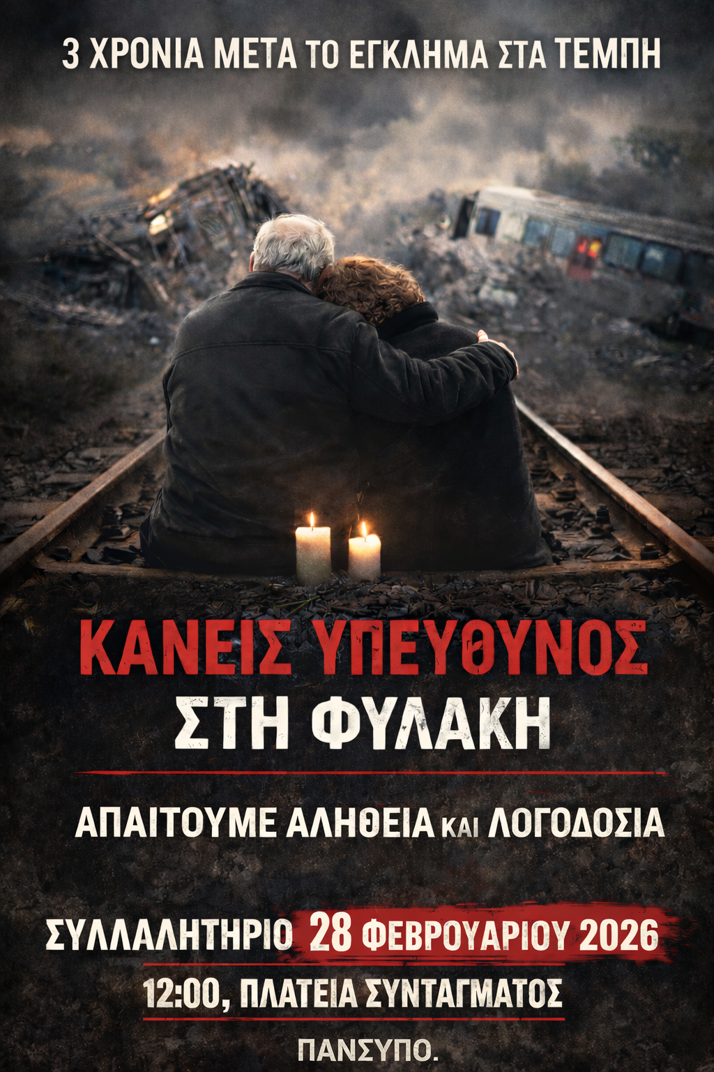Από την πρώτη στιγμή, ο Σύλλογος Συγγενών Θυμάτων Τεμπών και τα συνδικάτα κατήγγειλαν ότι δεν ήταν «ατύχημα», αλλά προδιαγεγραμμένο έγκλημα: αποτέλεσμα της ιδιωτικοποίησης, της υποστελέχωσης, της διάλυσης των συστημάτων ασφαλείας, της λογικής του κέρδους πάνω από τη ζωή.