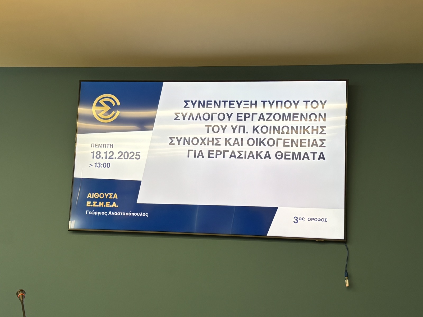 Στη σημερινή, πολύ ενδιαφέρουσα, συνέντευξη Τύπου του Συλλόγου Εργαζομένων του Υπουργείου Κοινωνικής Συνοχής και Οικογένειας για Εργασιακά Θέματα στην ΕΣΗΕΑ όπου είχαμε προσκληθεί ως Δ.Σ. του ΠΣΕ ΟΓΑ (ΟΠΕΚΑ – ΕΦΚΑ).