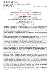 ΑΝΑΚΟΙΝΩΣΗ ΠΣΕ ΟΓΑ ΓΙΑ ΣΥΛΛΑΛΗΤΗΡΙΟ 28 ΦΛΕΒΑΡΗ 2026 (3 ΧΡΟΝΙΑ ΑΠΟ ΤΟ ΚΡΑΤΙΚΟ ΕΓΚΛΗΜΑ ΣΤΑ ΤΕΜΠΗ) ΑΝΑΚΟΙΝΩΣΗ ΠΣΕ ΟΓΑ ΓΙΑ ΣΥΛΛΑΛΗΤΗΡΙΟ 28 ΦΛΕΒΑΡΗ 2026 (3 ΧΡΟΝΙΑ ΑΠΟ ΤΟ ΚΡΑΤΙΚΟ ΕΓΚΛΗΜΑ ΣΤΑ ΤΕΜΠΗ)