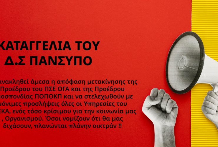 Καταγγελία για τη συνδικαλιστική δίωξη της προέδρου του ΠΣΕ ΟΓΑ και της ΠΟΠΟΚΠ