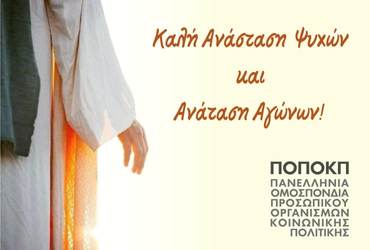 Ευχές Πανελλήνιας Ομοσπονδίας Προσωπικού Οργανισμών Κοινωνικής Πολιτικής: Καλή Ανάσταση Ψυχών και Ανάταση Αγώνων!