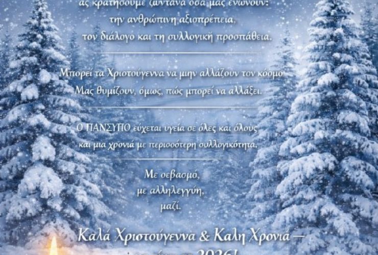 Ευχές ΠΑΝΣΥΠΟ-τ.ΟΕΕ-τ.ΟΕΚ: Καλά Χριστούγεννα & Καλή Χρονιά να είναι το 2026