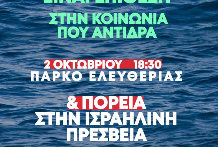 Πέμπτη 2/10, 18:30, Πάρκο Ελευθερίας / Κάτω τα χέρια από τον στόλο “Global Sumud Flotilla” – Λευτεριά στην Παλαιστίνη!